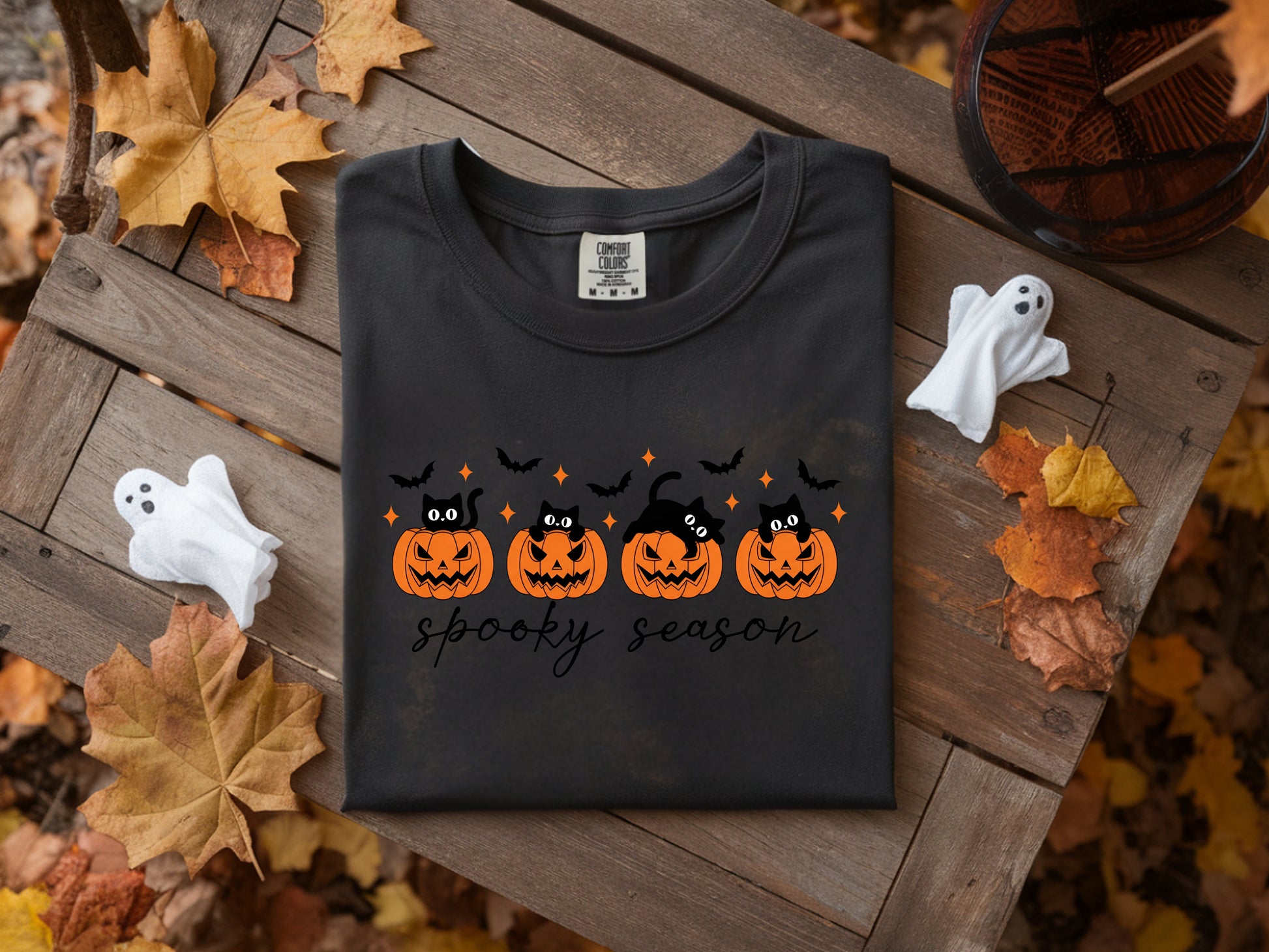 Celebrate the spooky season in style with this women's t-shirt featuring charming pumpkin and black cats. Crafted for comfort and a flattering fit, it’s perfect for fall festivities or casual outings. Show off your festive spirit while enjoying soft, breathable fabric that moves with you. Embrace the season confidently and add a festive touch to your wardrobe today.