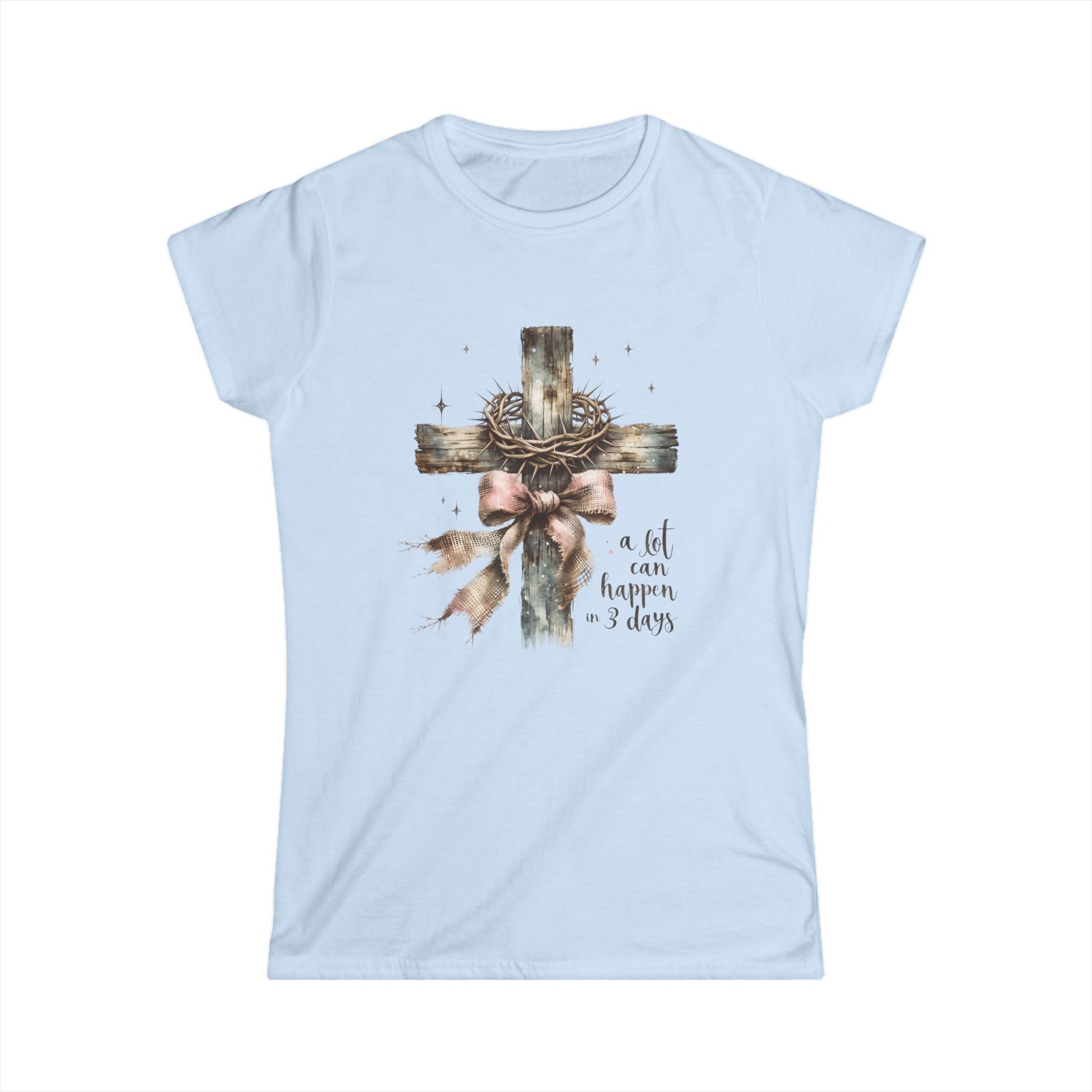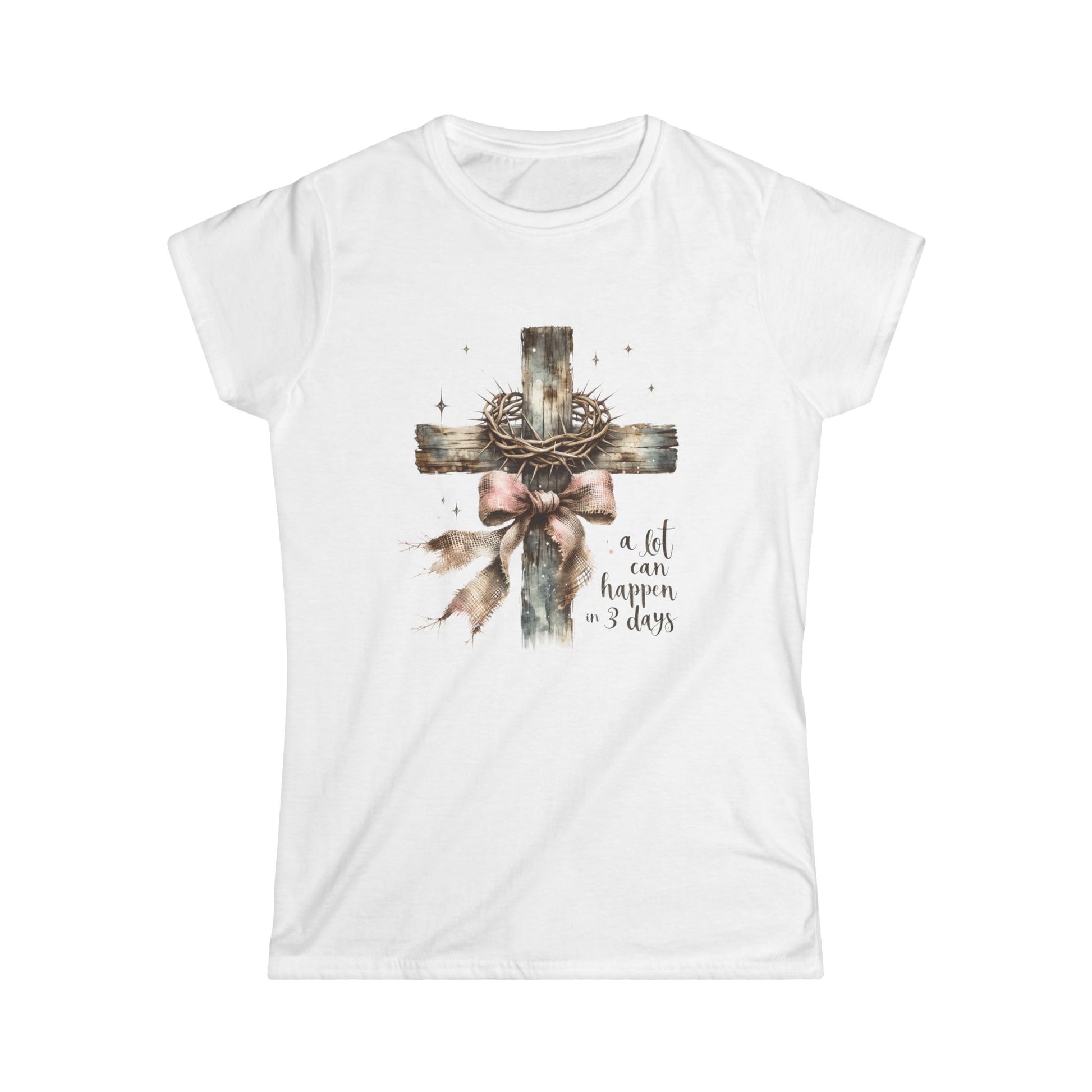 Introducing the perfect Women’s Softstyle Tee that effortlessly blends comfort and meaning. This tee features a heartfelt design that resonates with those who cherish faith and reflection. It's ideal for casual outings, Sunday gatherings, or simply adding a touch of inspiration to your everyday wardrobe.