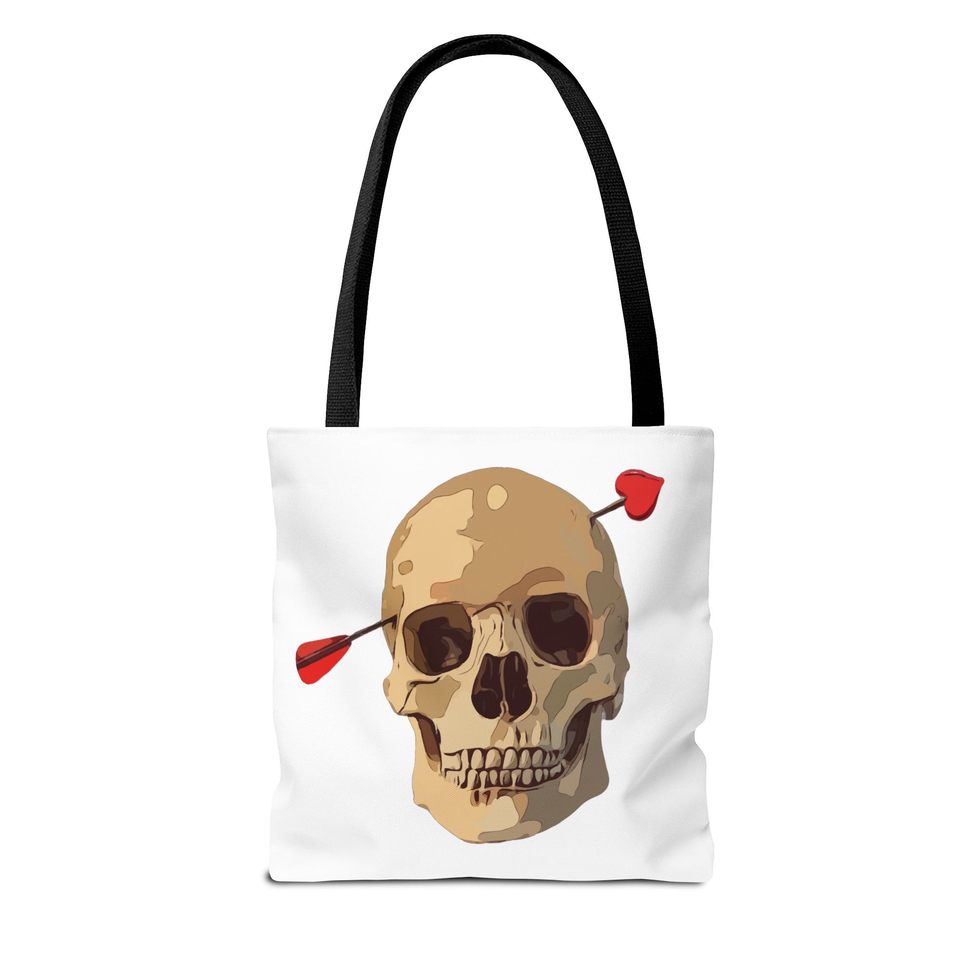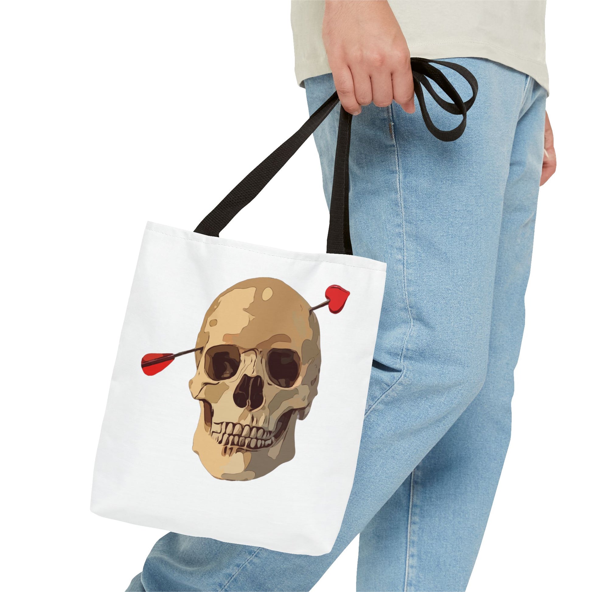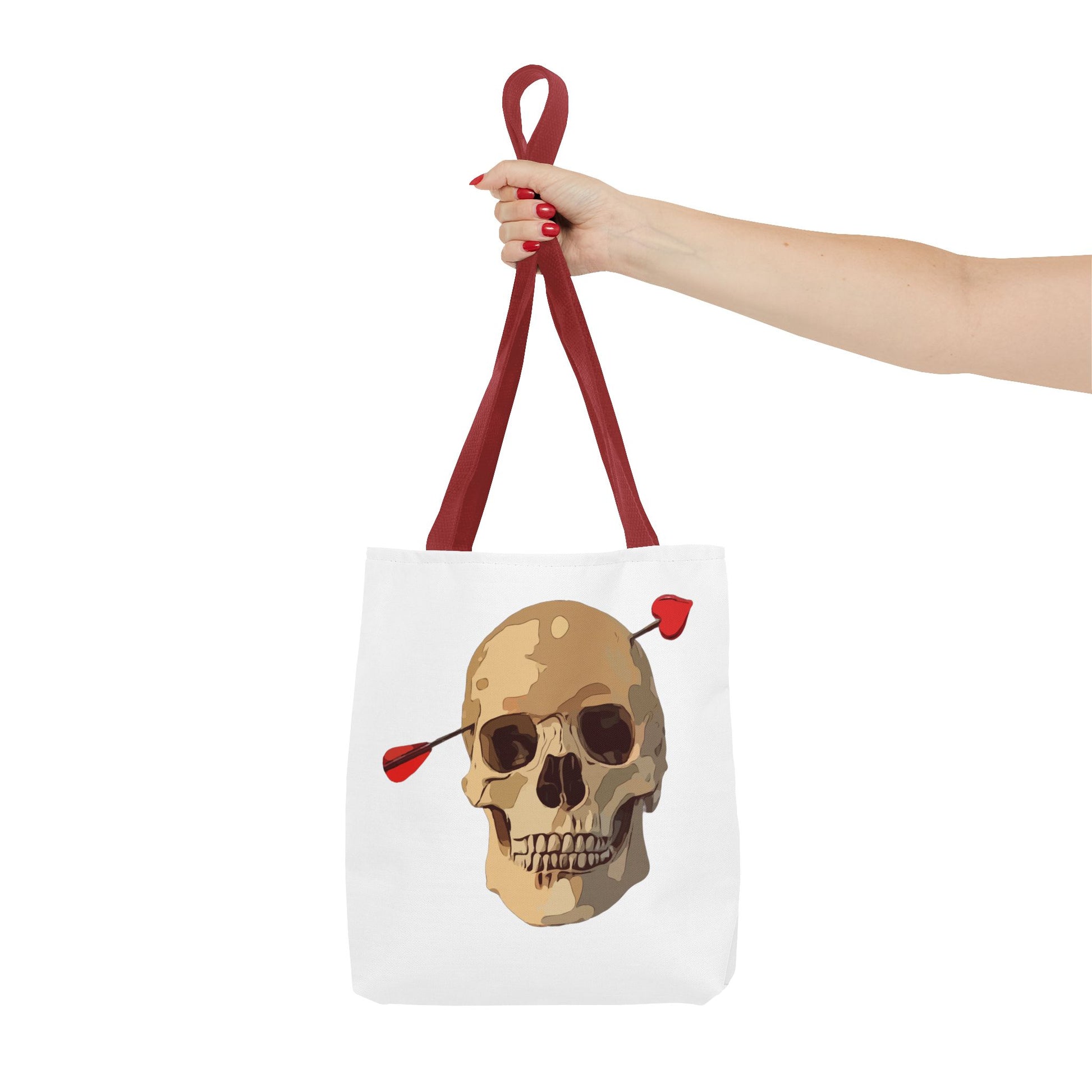 This Skull Graphic Cupid Tote Bag is perfect for those who love edgy and unique designs. It is a versatile and sturdy bag, ideal for everyday use or as a gift for someone with a bold style. Perfect for Halloween, goth enthusiasts, or anyone who appreciates a touch of darkness in their accessories.