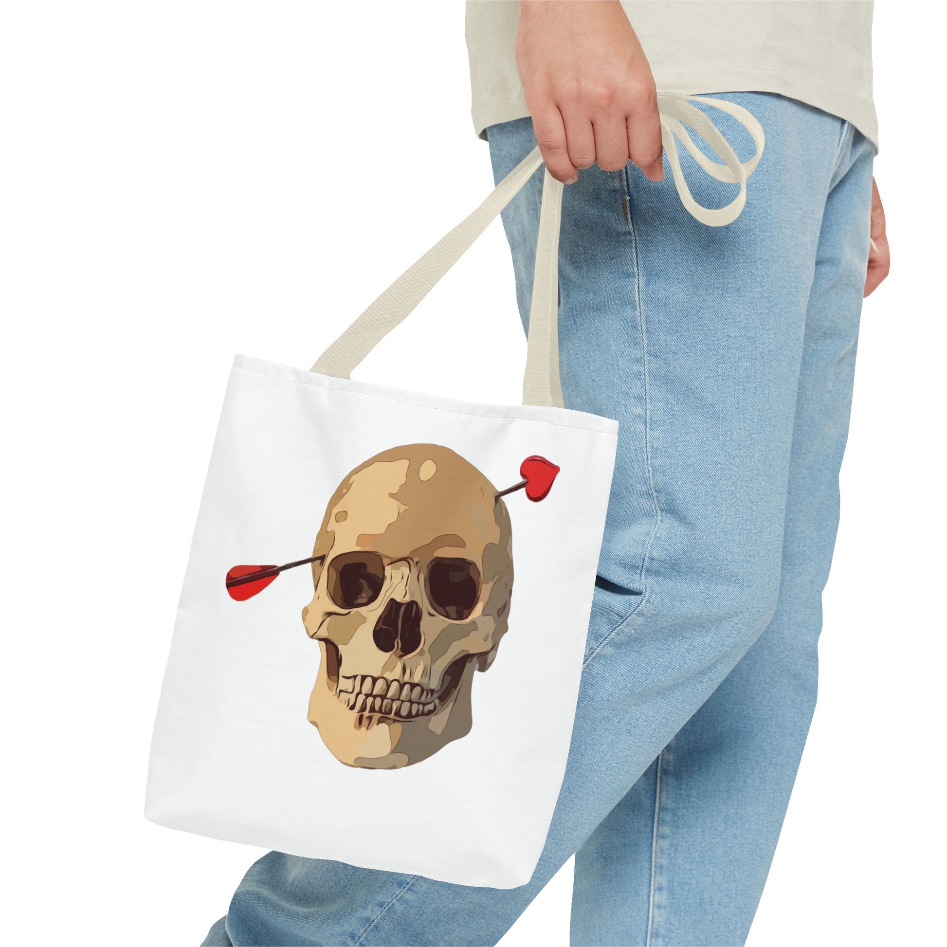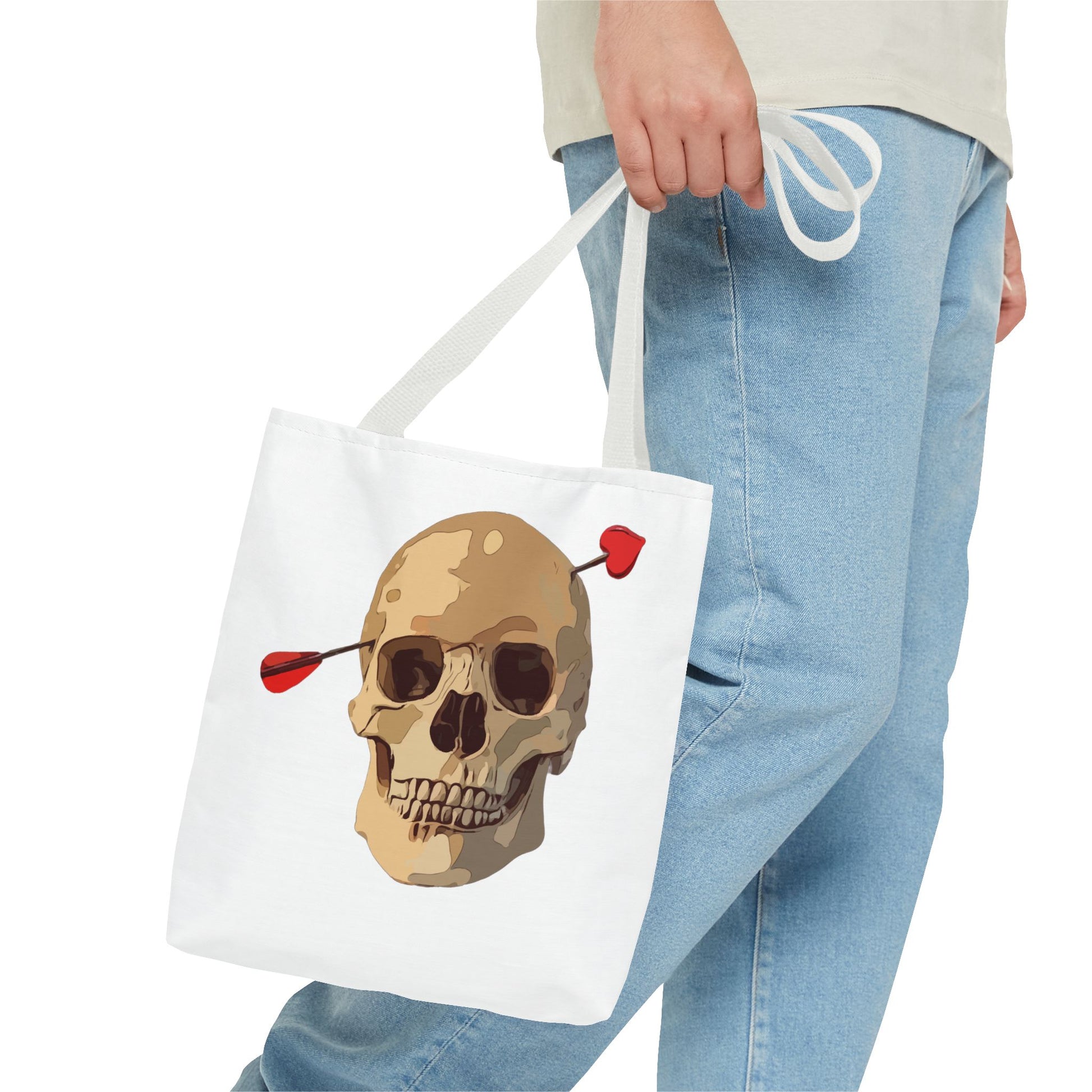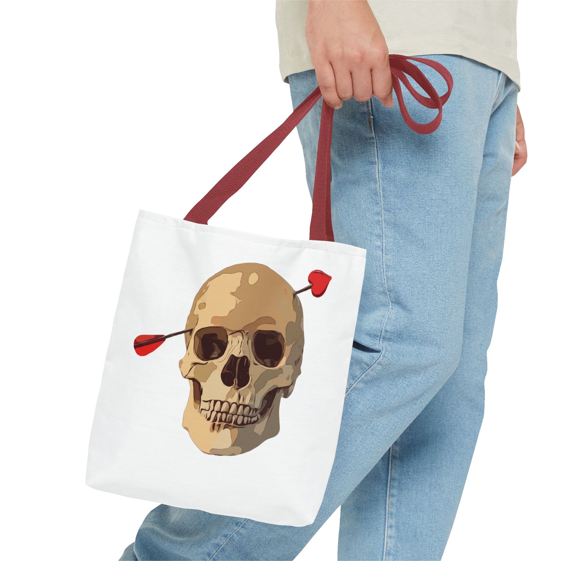 This Skull Graphic Cupid Tote Bag is perfect for those who love edgy and unique designs. It is a versatile and sturdy bag, ideal for everyday use or as a gift for someone with a bold style. Perfect for Halloween, goth enthusiasts, or anyone who appreciates a touch of darkness in their accessories.