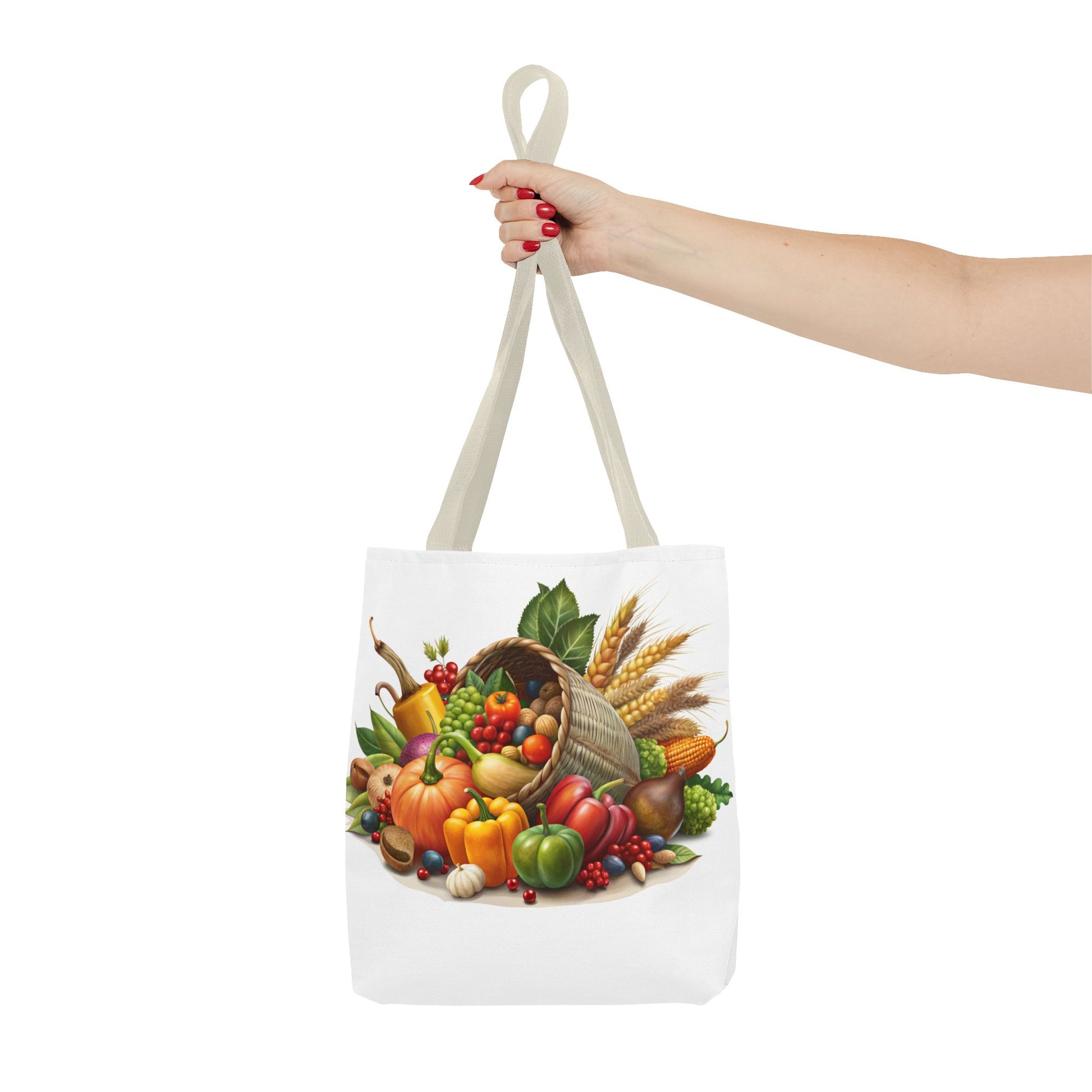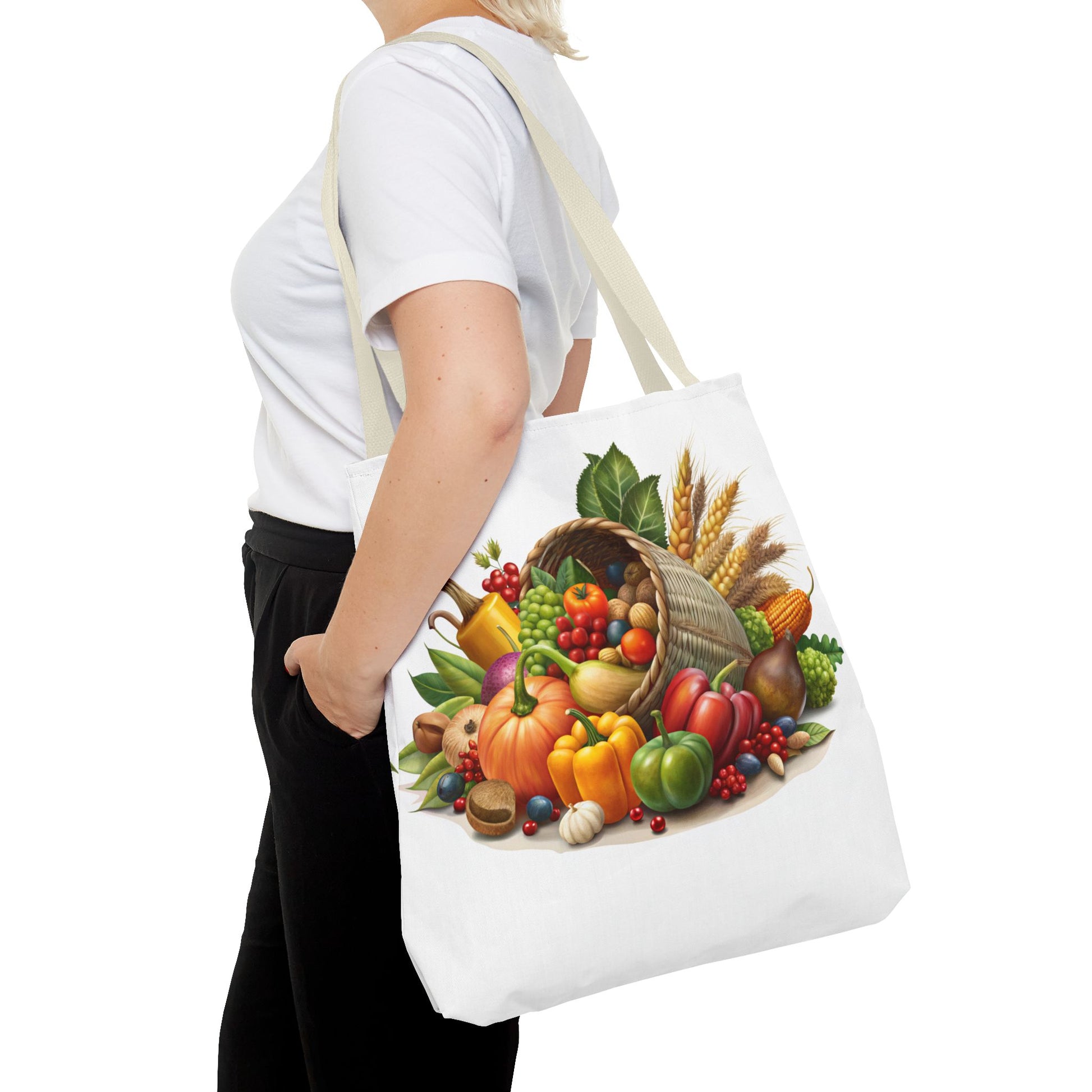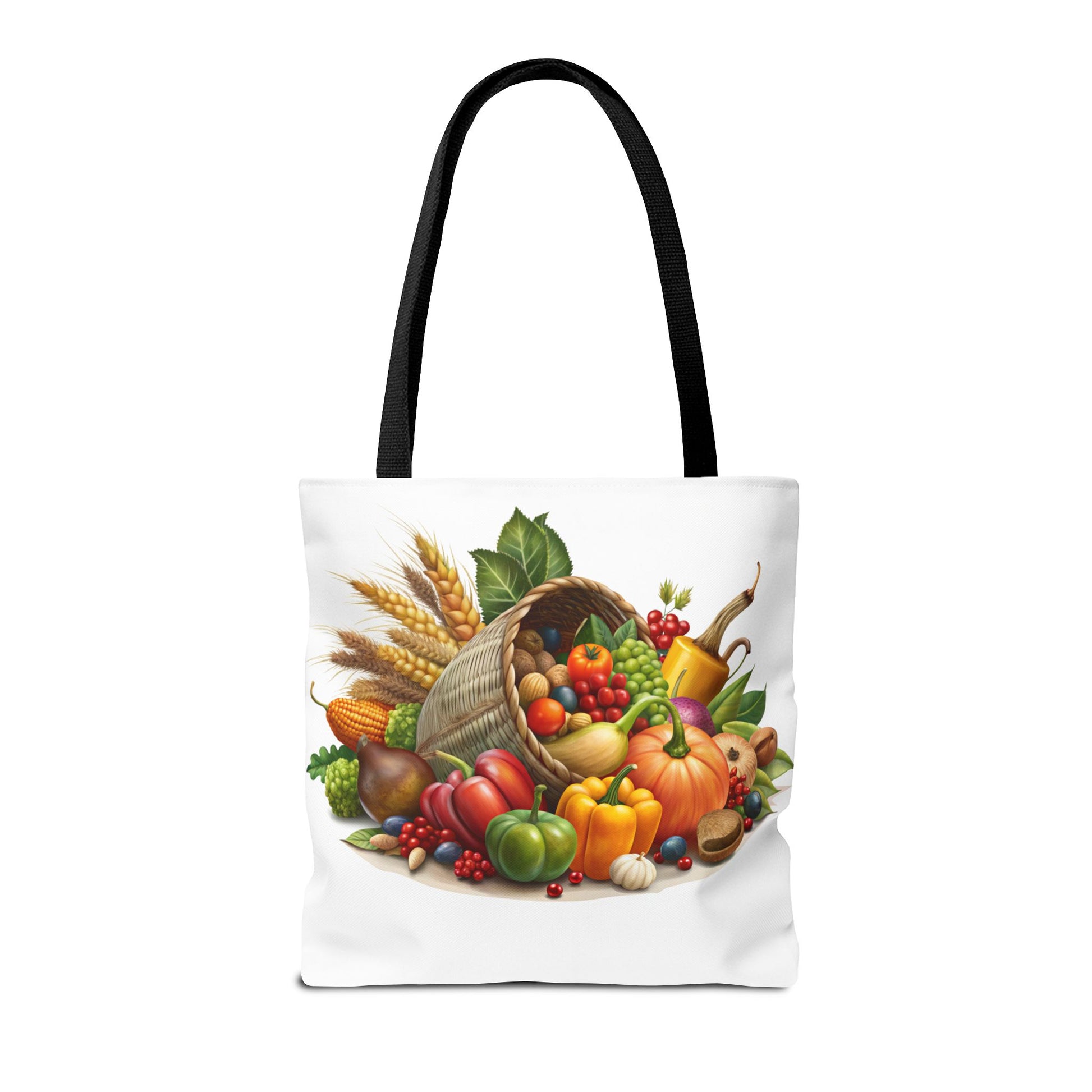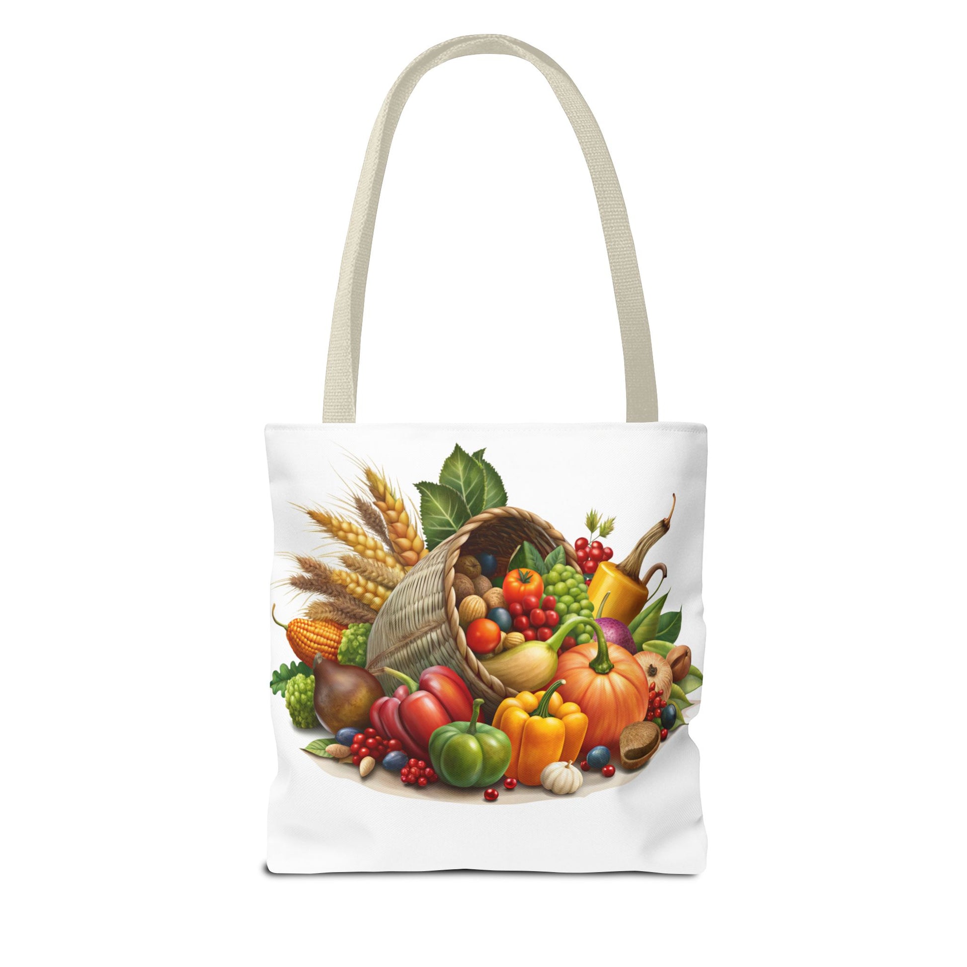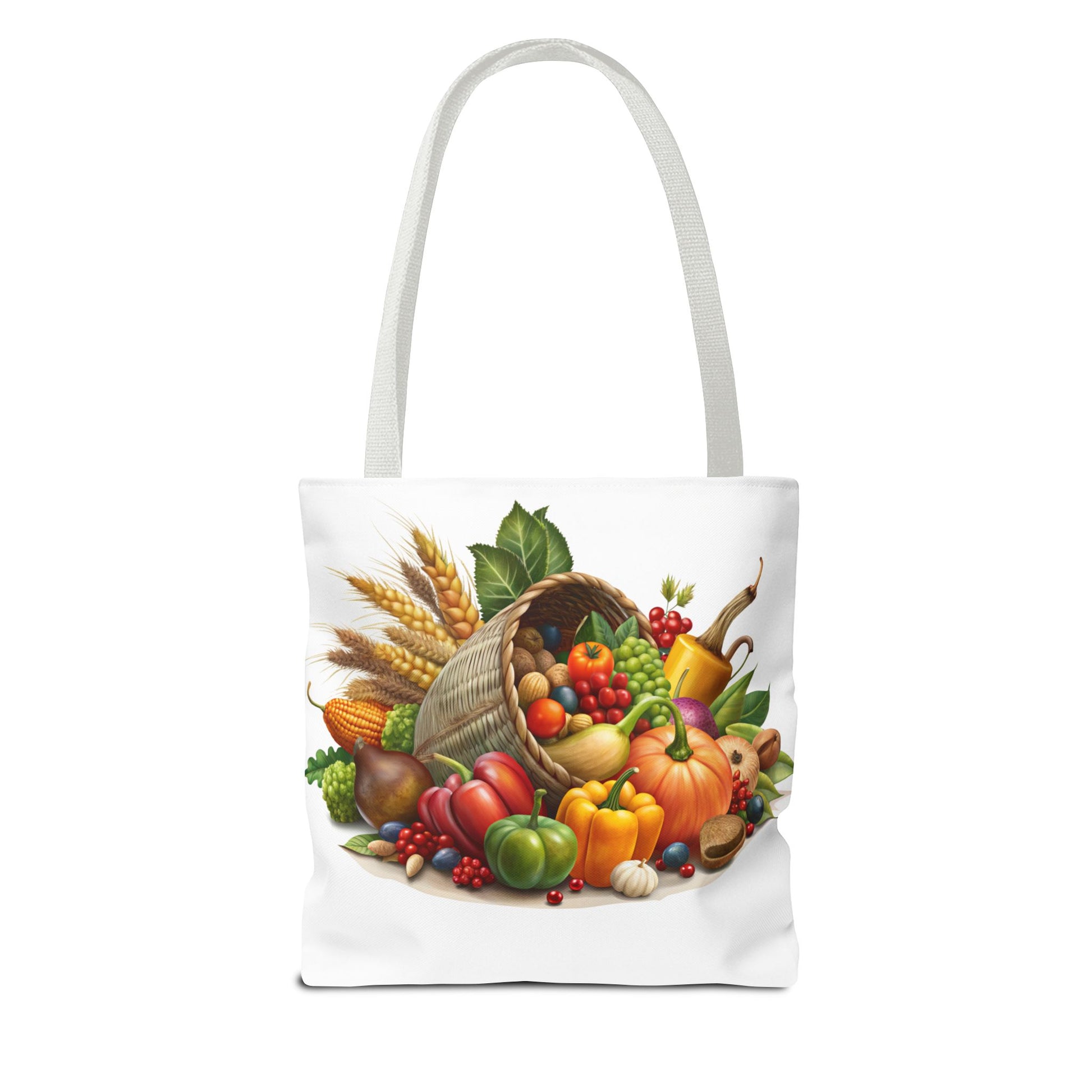 This Thanksgiving Cornucopia Tote Bag is perfect for carrying all your essentials during the holiday season. With a festive design featuring a cornucopia overflowing with seasonal goodies, this tote bag exudes a cozy and cheerful vibe. It is relevant to those looking to add a touch of Thanksgiving spirit to their outfit and is ideal for grocery shopping, running errands, or even as a thoughtful gift for a hostess.